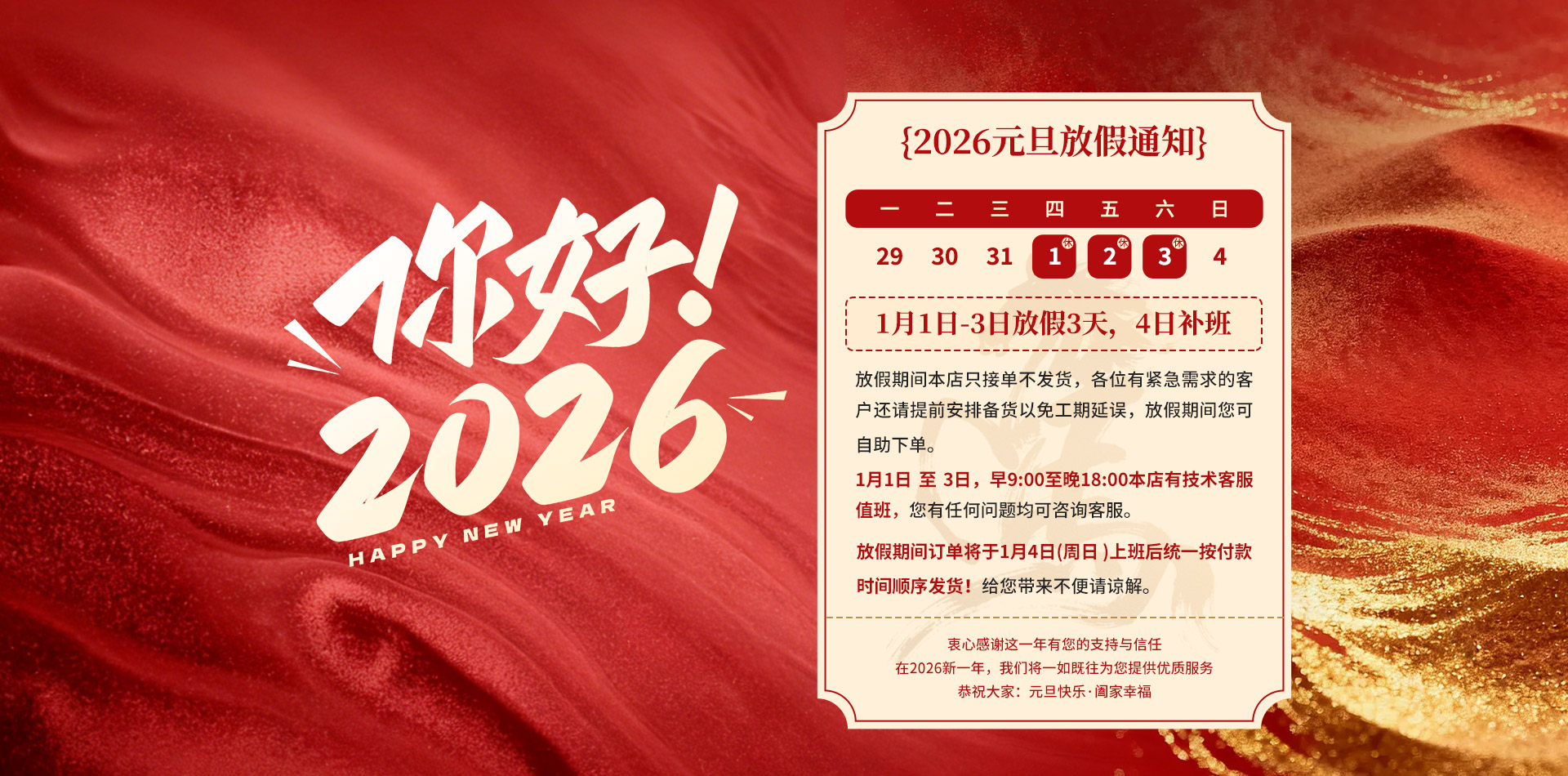 元旦放假提醒